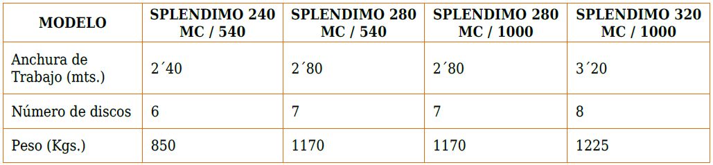 – Posición de transporte: 100º la 240 MC – 130º la 280 MC y la 320 MC