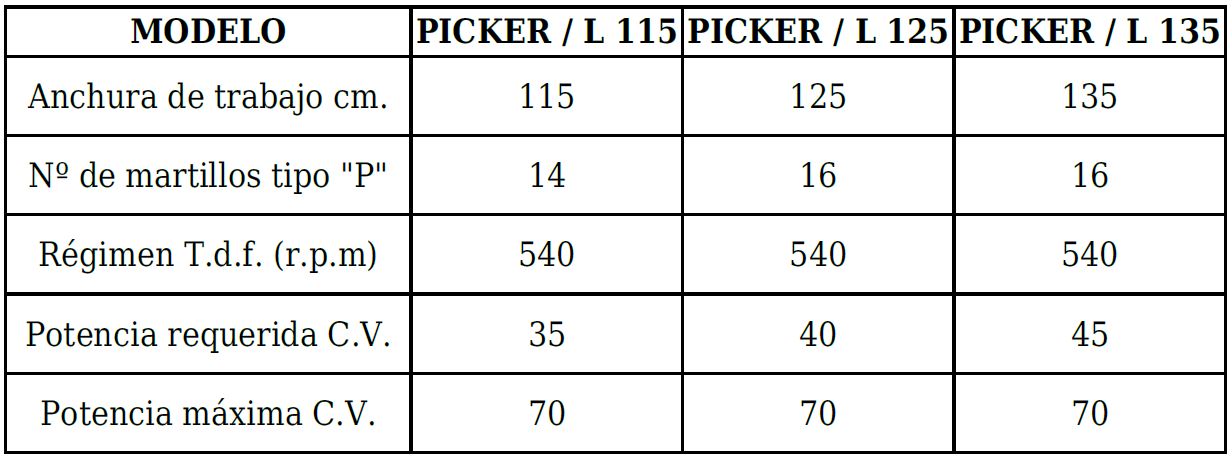 La trituradora PICKER/L puede trabajar en todo tipo de terrenos, incluidos los pedregosos en los cuales no es posible trabajar con las máquinas tradicionales ya que, como el desbroce se efectúa muy cerca del suelo, el rotor triturador se podría desequilibrar y romper; en el modelo PICKER, el triturado se efectúa en una cámara que queda en una posición más elevada con respecto al suelo, y, por lo tanto, el rotor no llega a tocar las piedras, la arena, la hierba ni ningún otro material.