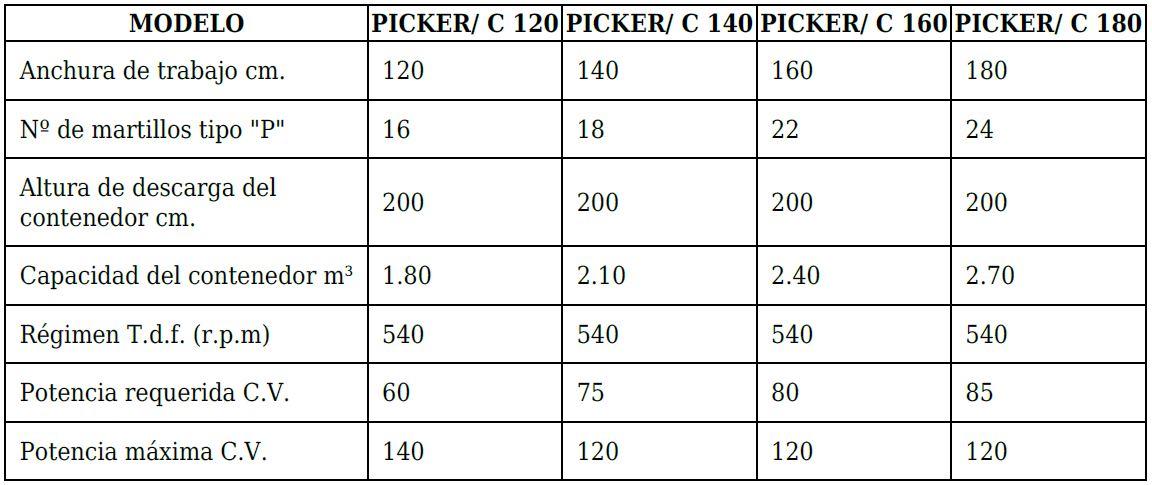 – Rotor pick up de alimentación con transmisión independiente y cadena autolubrificante