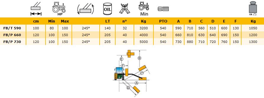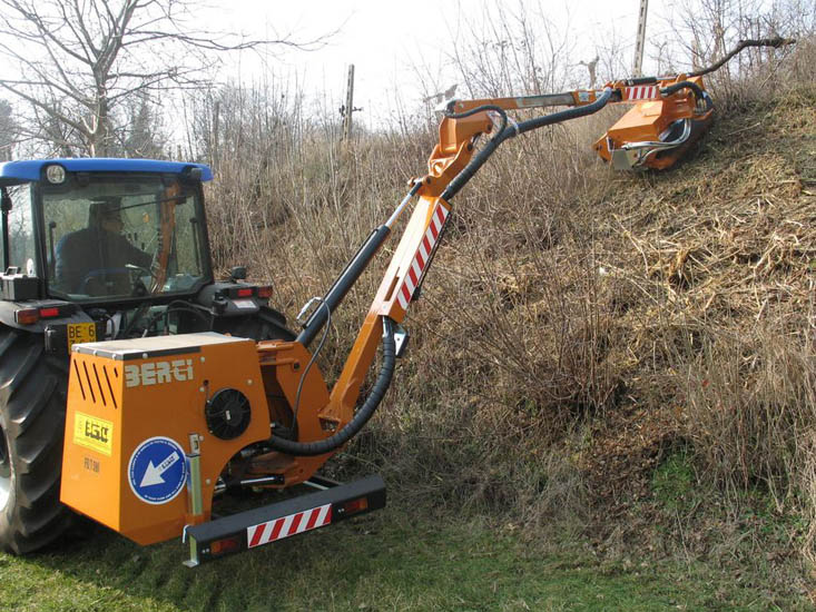 Aunque este modelo se ha catalogado como una desbrozadora mediana, posee todas las características de una desbrozadora profesional; de hecho, su maniobrabilidad es elevada tanto si se usa detrás de la rueda del tractor como con la máxima extensión del brazo (brazo telescópico). Indicada para triturar hierba y sarmientos de hasta 7-8 cm de diámetro, aplicable a tractores de 80 a 150 CV.