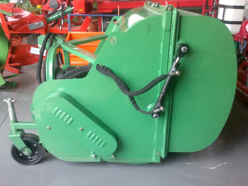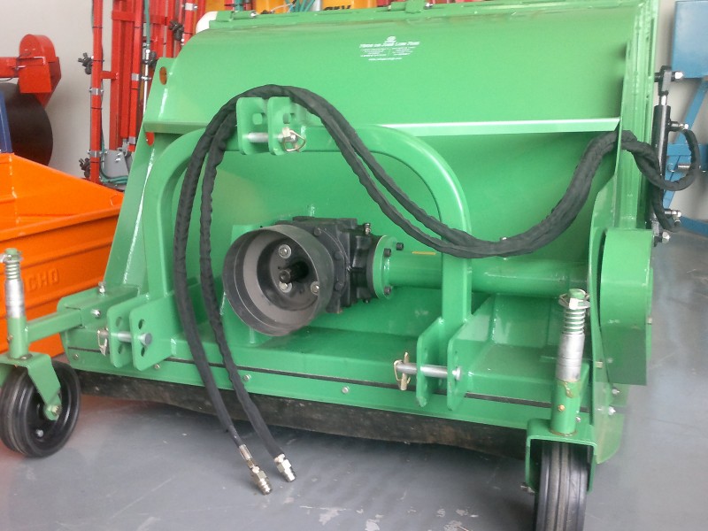 Desbrozadora con recogedor de 120cm de ancho de trabajo, para tractores de 20 a 50 cv, nueva a estrenar. Enganche universal de 3 puntos, correas dentadas de alta resistencia, ruedas pivotantes regulables en altura, recogedor de 720 litros de capacidad con apertura hidráulica, alta velocidad periférica de las cuchillas o martillos para un corte perfecto, etc. Garantia de 2 años.