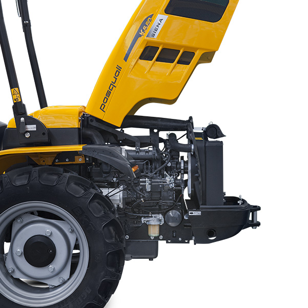 El tractor Pasquali Siena K60, con ruedas isodiamétricas es una máquina profesional diseñada para trabajar en explotaciones agrícolas y en cultivos especiales donde los espacios para maniobrar son reducidos, como viñedos, frutales o invernaderos.