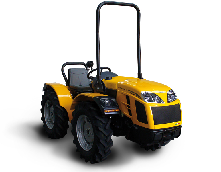 El tractor Pasquali Siena, con ruedas isodiamétricas es una máquina profesional diseñada para trabajar en pequeñas explotaciones agrícolas y en cultivos especiales donde los espacios para maniobrar son reducidos, como viñedos, frutales o invernaderos. Entre sus prestaciones destacan también su estructura compacta y perfil bajo.