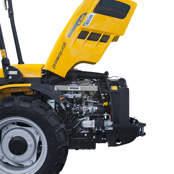 El tractor especializado Pasquali EOS, con ruedas isodiamétricas es una máquina profesional diseñada para trabajar en explotaciones agrícolas y en cultivos especiales donde los espacios para maniobrar son reducidos, como viñedos, frutales o invernaderos.