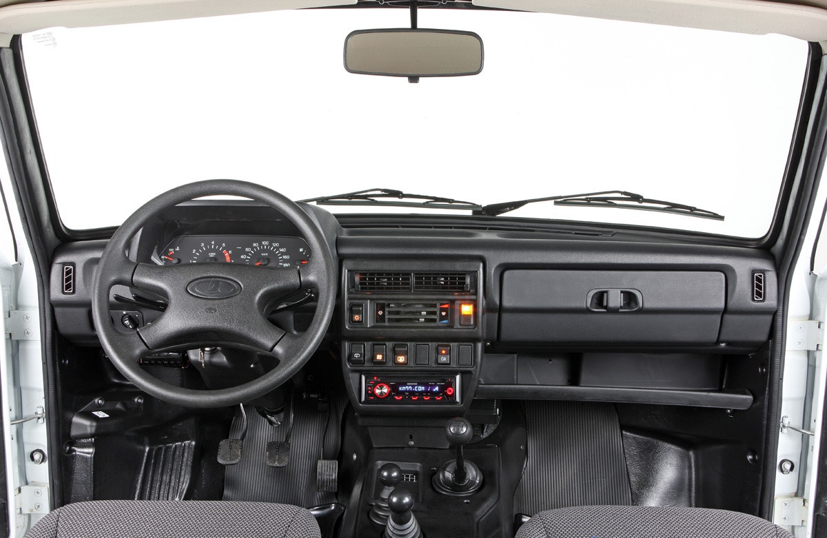 El nuevo cuadro de mandos del LADA 4×4 (2121) incorpora una mayor información para el conductor al disponer de información de temperaturas y reloj digital.